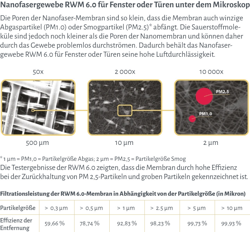 Die Nanofaser Technologie macht die Filterung von kleinsten Partikeln möglich, gewährt gleichzeitig aber eine gute Sicht nach Außen und ist lichtdurchlässig. So kannst du im Sommer die ganze Nacht das Fenster offen lassen, ohne Angst vor ungebetenen Eindringlingen zu haben.