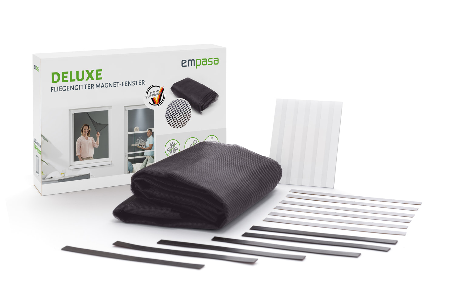 Das Fliegengitter Fenster „DELUXE“ aus langlebigem Fiberglasgewebe schützt dein Zuhause zuverlässig vor Insekten. Mittels der innovativen Magnet-Klick-Befestigung lässt sich das Fliegengitter schnell und einfach in kurzer Zeit anbringen. Die mitgelieferten Magnete sorgen für eine besonders stabile Fixierung, ganz ohne Bohren oder Schrauben. Das schwarze Gewebe ist nicht nur effektiv, sondern ermöglicht auch eine optimale Sicht nach außen. Alternativ steht dir unser Pollenschutzgewebe zur Verfügung. Dank der geringen Einbautiefe von 2 mm ist der Insektenschutz besonders schlank und lässt sich nahezu überall lückenlos montieren. Die mitgelieferten Magnete sorgen für eine besonders stabile Fixierung, ohne Bohren oder Schrauben.