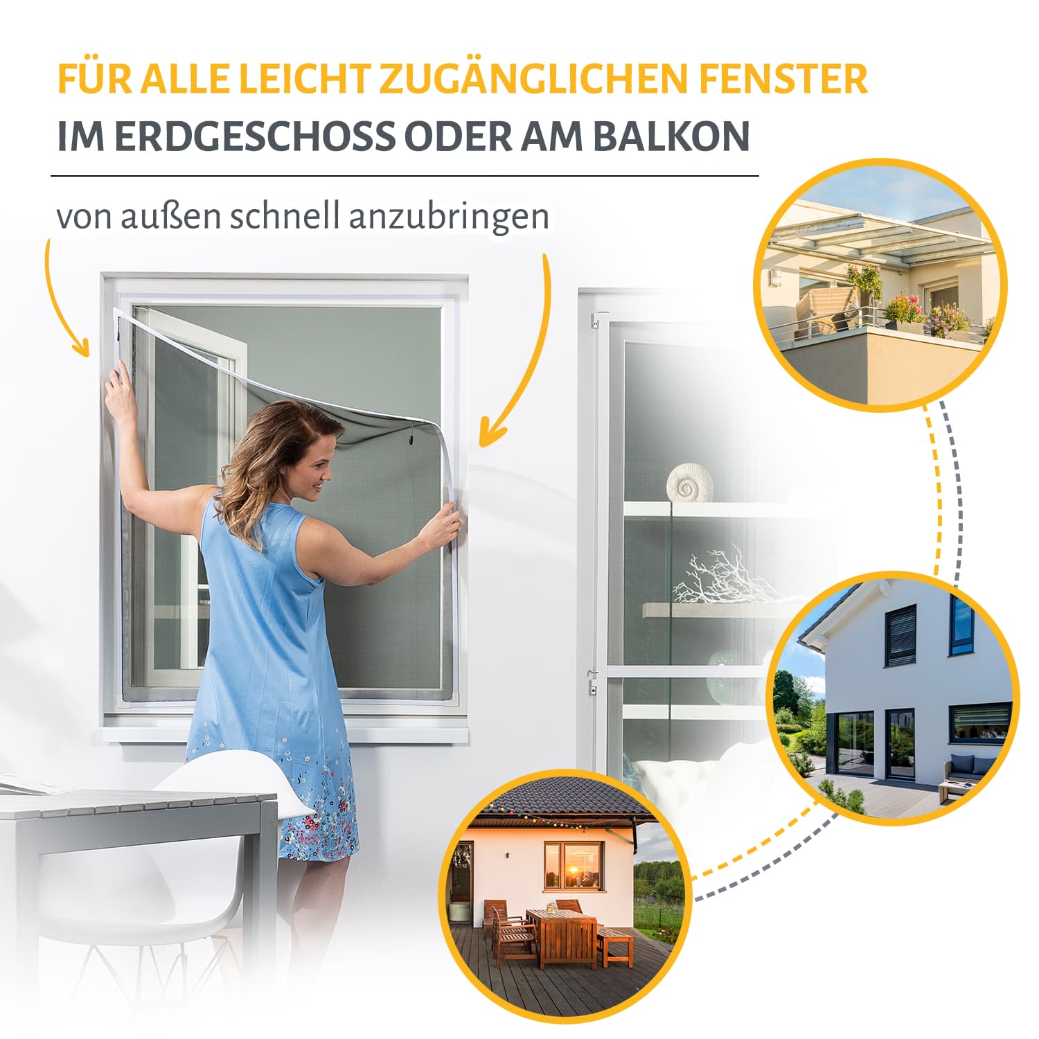 Der Insektenschutz muss von außen am Fenster montiert werden, deshalb wird eine Montage idealerweise im Erdgeschoss oder im 1. Stock empfohlen.