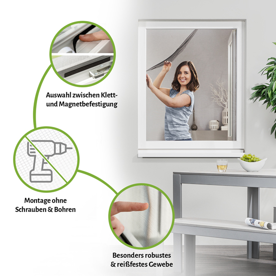 Sehr einfach anzubringen, sitzt perfekt und hält zuverlässig Insekten fern. Gute Qualität zum fairen Preis ,absolut empfehlenswert!
