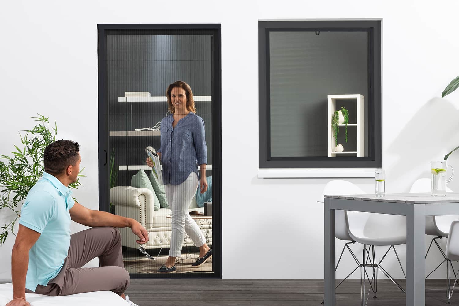 Unsere Insektenschutz Plissee Tür lässt sich dank ihrer durchdachten Konstruktion kinderleicht öffnen und schließen. Sie ist universell kürzbar und lässt sich an nahezu jedem Türrahmen verbauen. Der Bausatz besteht aus einer extra schmalen Plissee Kassette inklusive Polyestergewebe, seitlichen Führungsschienen sowie Montagematerial. Der Rahemen der Plissee Tür besteht aus langlebigen Aluminium.