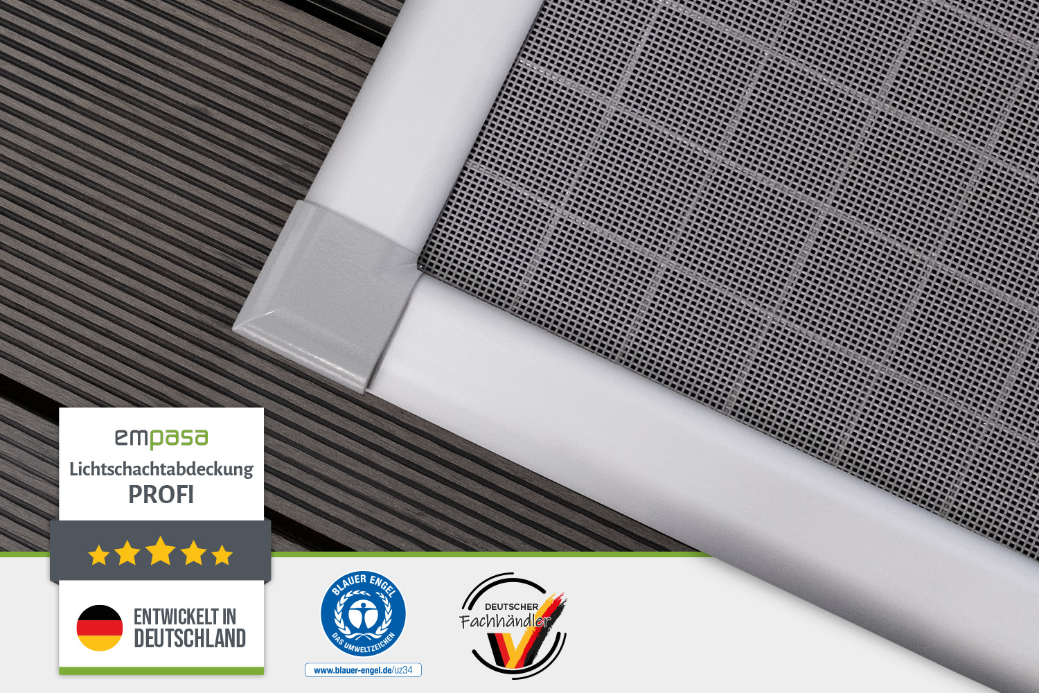 Die Lichtschachtabdeckung PROFI schützt zuverlässig vor Blättern, Schmutz und Insekten. Das jeweilige Gewebe sorgt für viel Licht und Helligkeit im Kellerraum, während der stabile, rostfreie Aluminiumrahmen eine hochwertige Optik mit langer Lebensdauer verbindet. Mit den beiliegenden Schrauben montierst du die Abdeckung im Handumdrehen am vorhandenen Gitterrost. Sie passt auf alle gängigen Schachtgrößen und ist wahlweise als Zuschnitt nach Maß oder komplett vormontiert erhältlich.