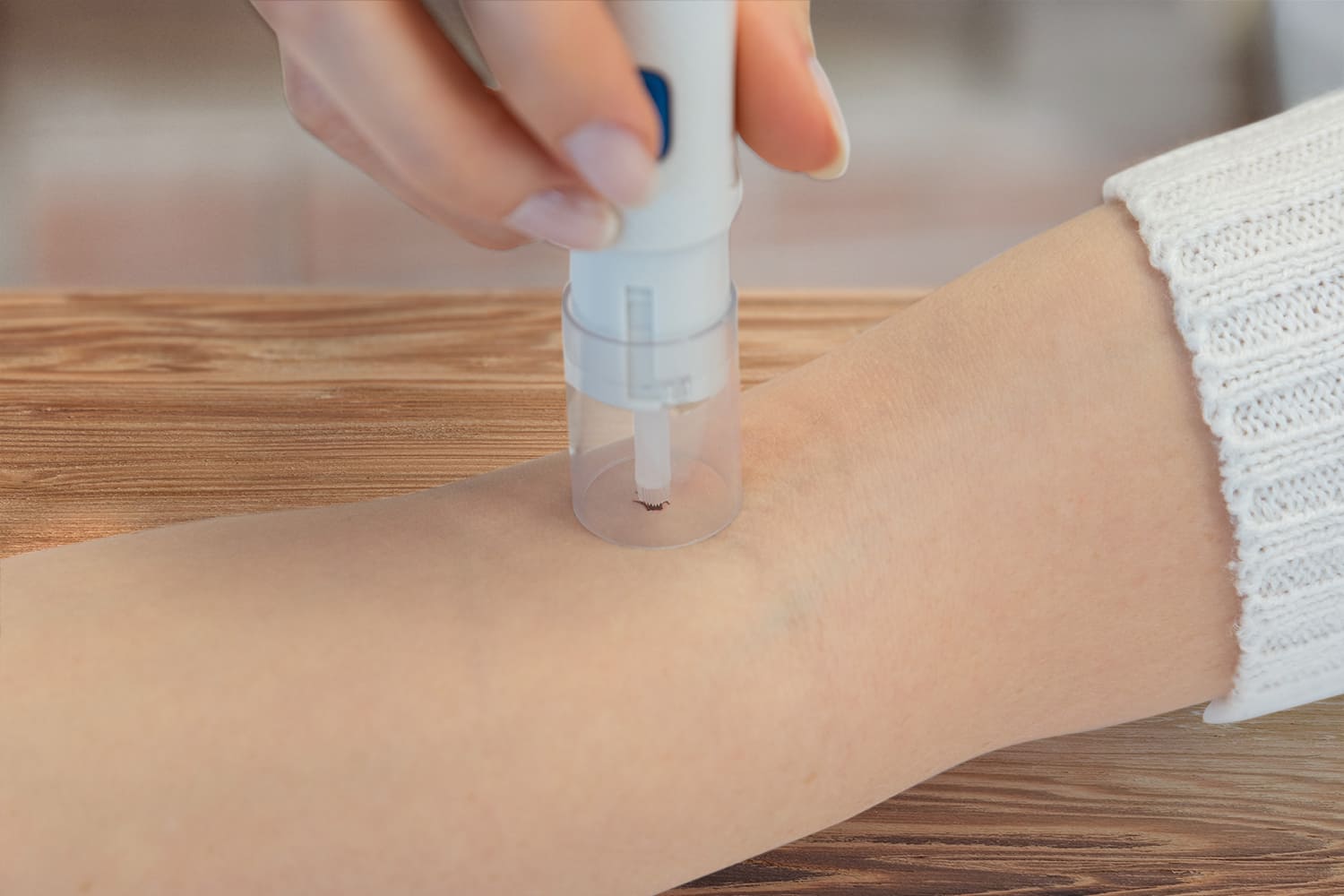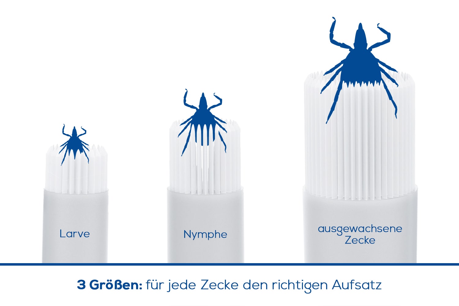 Im Idealfall löst sich die Zecke freiwillig aus der Haut hier kommt unser Zeckendreher ins Spiel. Unser Produkt entfernt die Zecke innerhalb weniger Sekunden ohne mechanische Einwirkung. Die Hülse sorgt für den optimalen, konstanten Abstand zur Zecke, sodass diese nicht gequetscht wird. Mit dem rotierenden Spezialaufsatz werden selbst kleinste Larven und Nymphen lebendig und unversehrt aus der Haut gelöst ohne Rückstände zu hinterlassen.